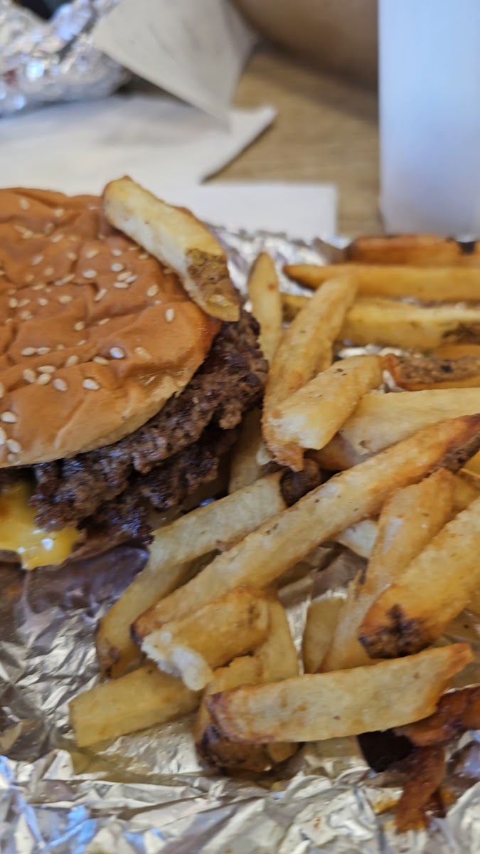 The Cajun Fries are a must-try, perfectly seasoned and portioned generously enough to share-or not, if you’re feeling hungry. You can even upgrade to a Bacon Cheeseburger with Cajun Fries, one of their most popular combinations. Everything’s cooked fresh, never frozen, and you can actually watch your burger being assembled right behind the counter. That transparency adds to the authentic Five Guys experience.